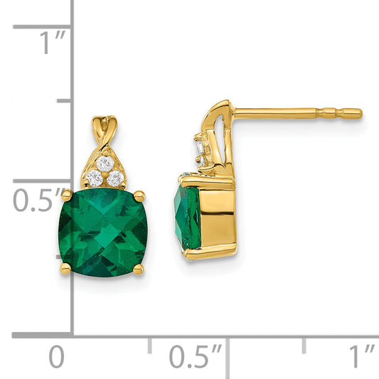 Fest 14k Gelb Gold Schachbrett Erstellt Simuliert Smaragd und CZ OhrRinge