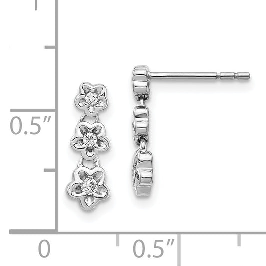 Fest 14k Wiriß Gold Simuliert CZ 3-Blume Post OhrRinge