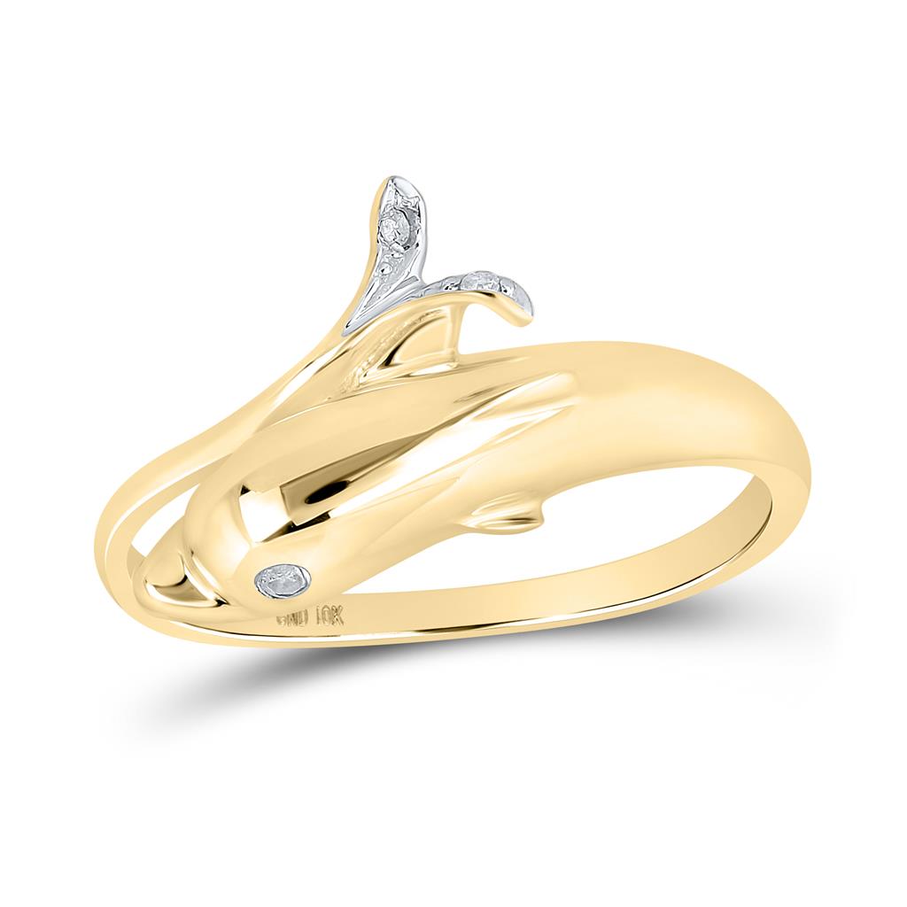 10k Gelb Gold Runden DurchMeinnt Delfin Fistcer Eseinne Wickeln Ring .03 Ktzw