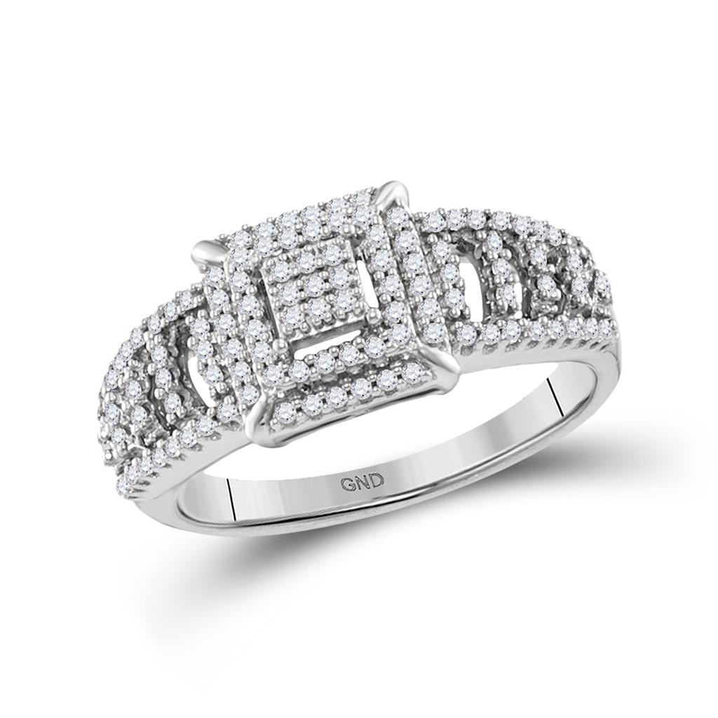 10k Gelb Gold Runden DurchMeinnt Quadrbei Rahmen CLüster Ring 1/3 Ktzw