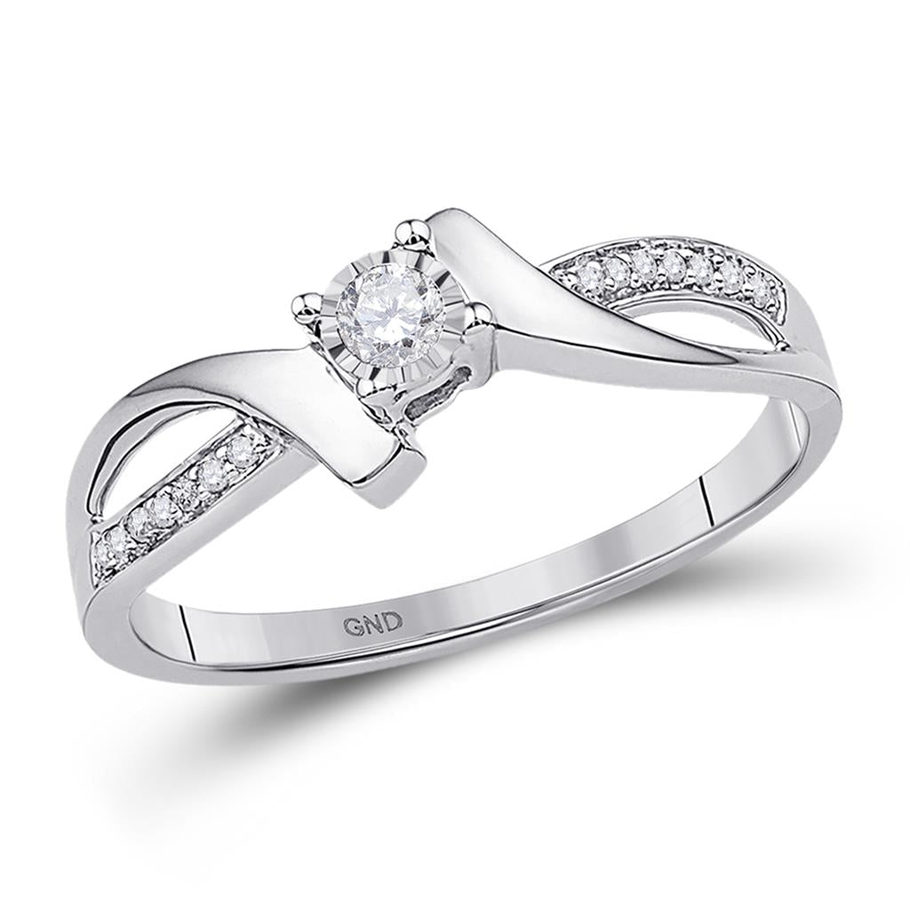 14k Wiriß Gold Runden DurchMeinnt Solesär Versprecern Ring 1/10 Ktzw