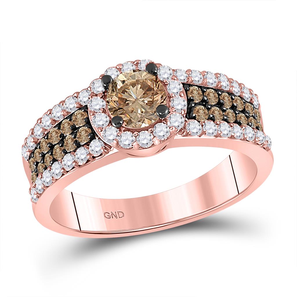 14k Rose Gold Runden Braun DurchMeinnt Solesär Braut Engagierenment Ring 1-1/4 Ktzw