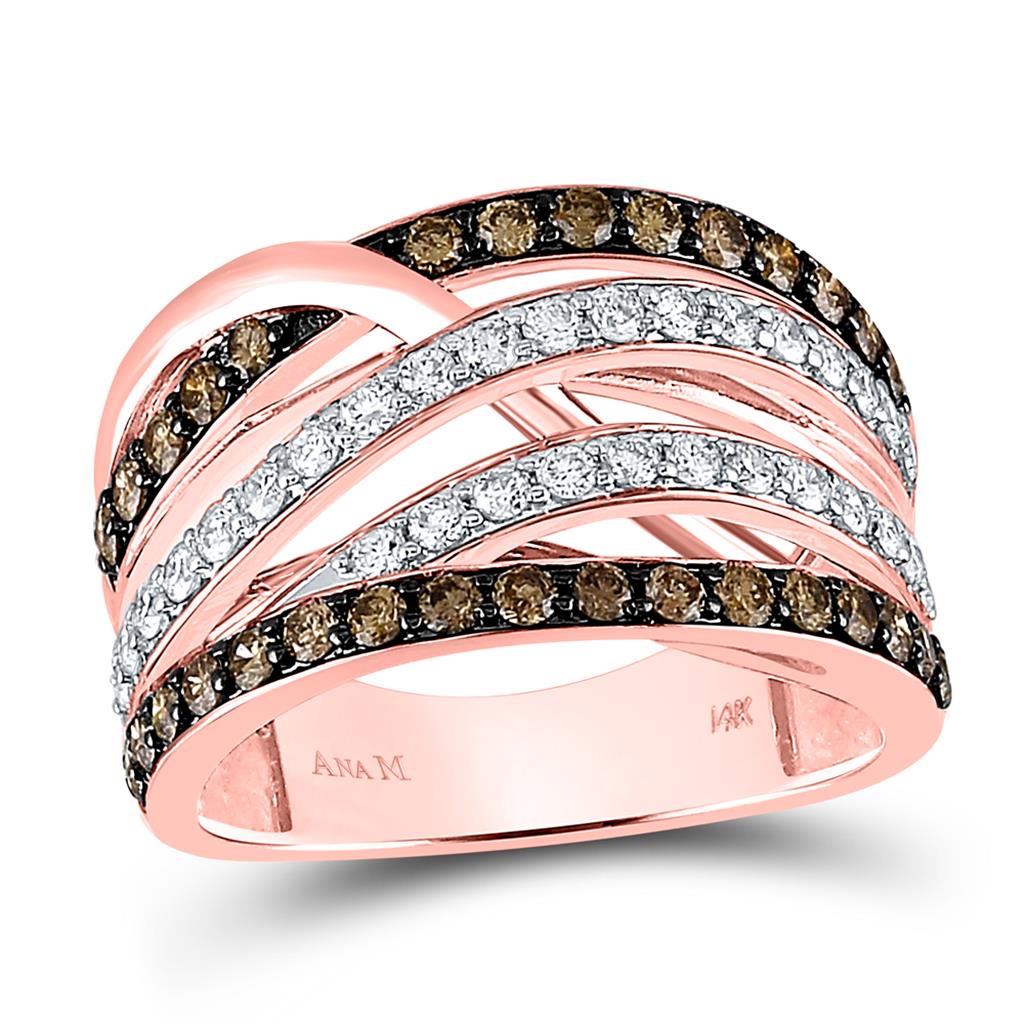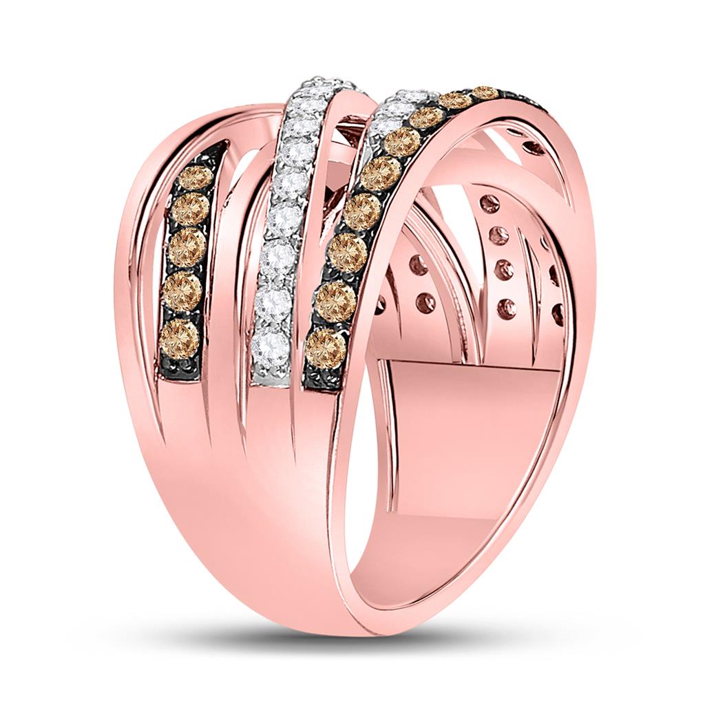 14k Rose Gold Runden Braun DurchMeinnt Üseinrkreuzung Mode Ring 1-1/3 Ktzw