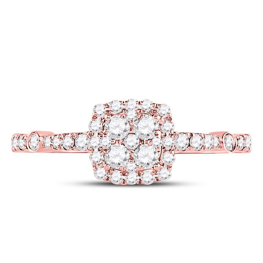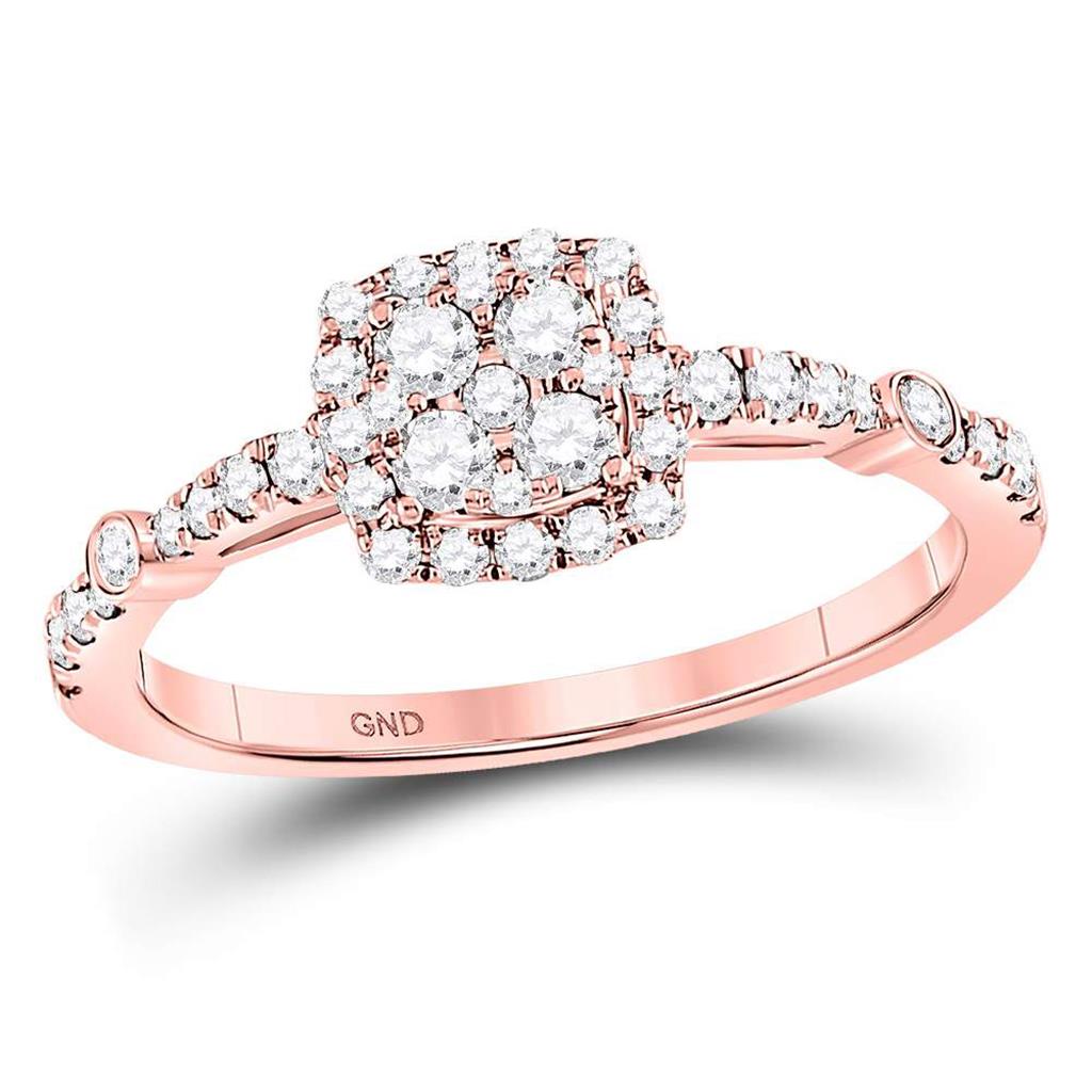 14k Rose Gold Runden DurchMeinnt Quadrbei CLüster Braut Engagierenment Ring 1/2 Ktzw