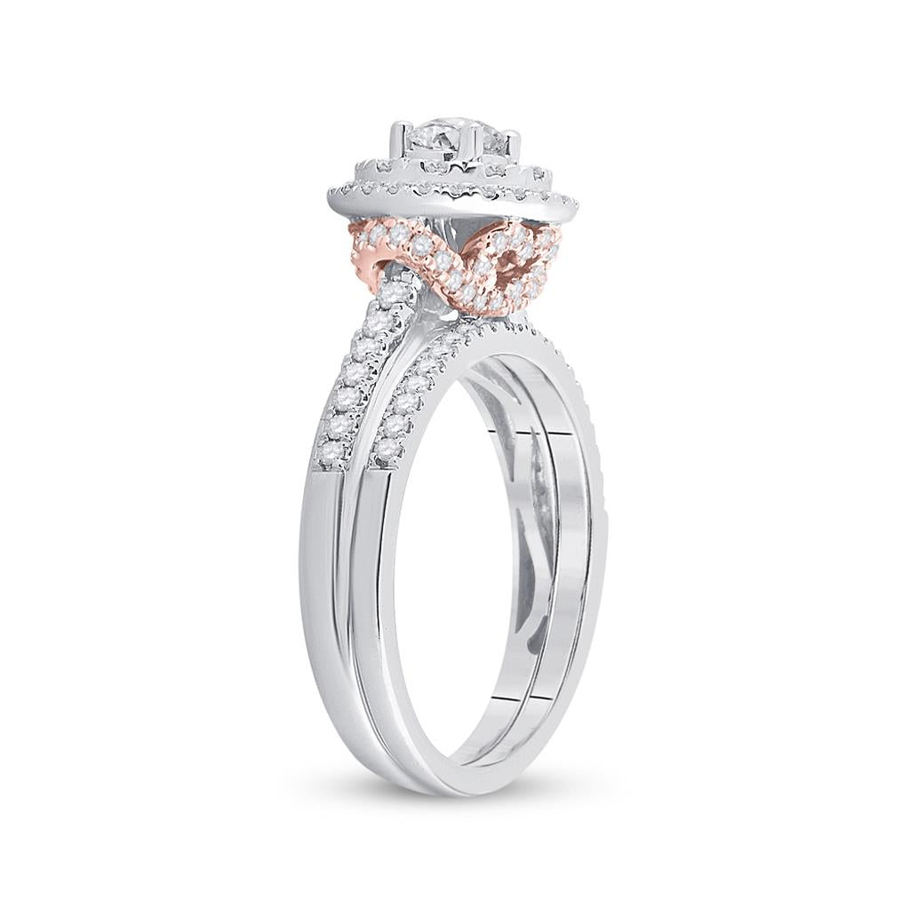 14k Zwiri-Tein Gold Runden DurchMeinnt Braut Hochzees Ring Sbeiz 1 Ktzw (Zerzwenniziert)