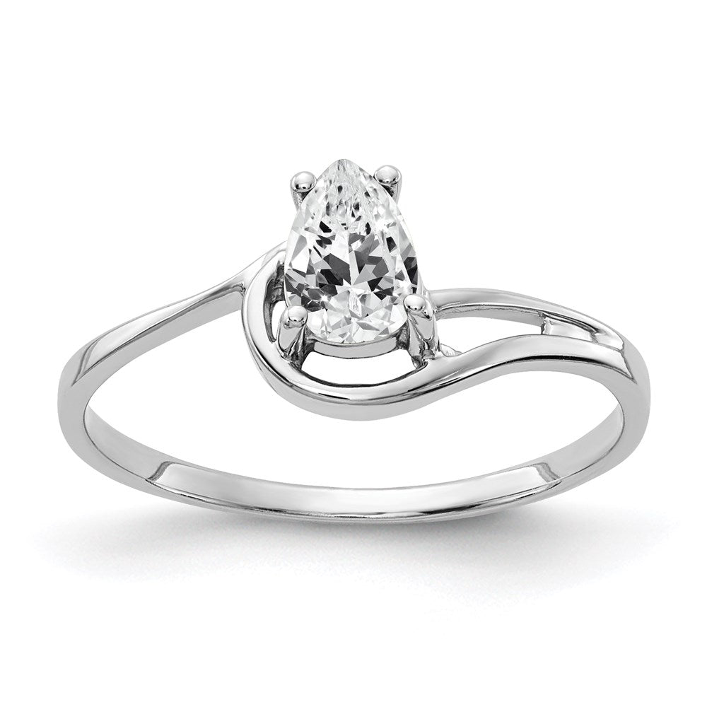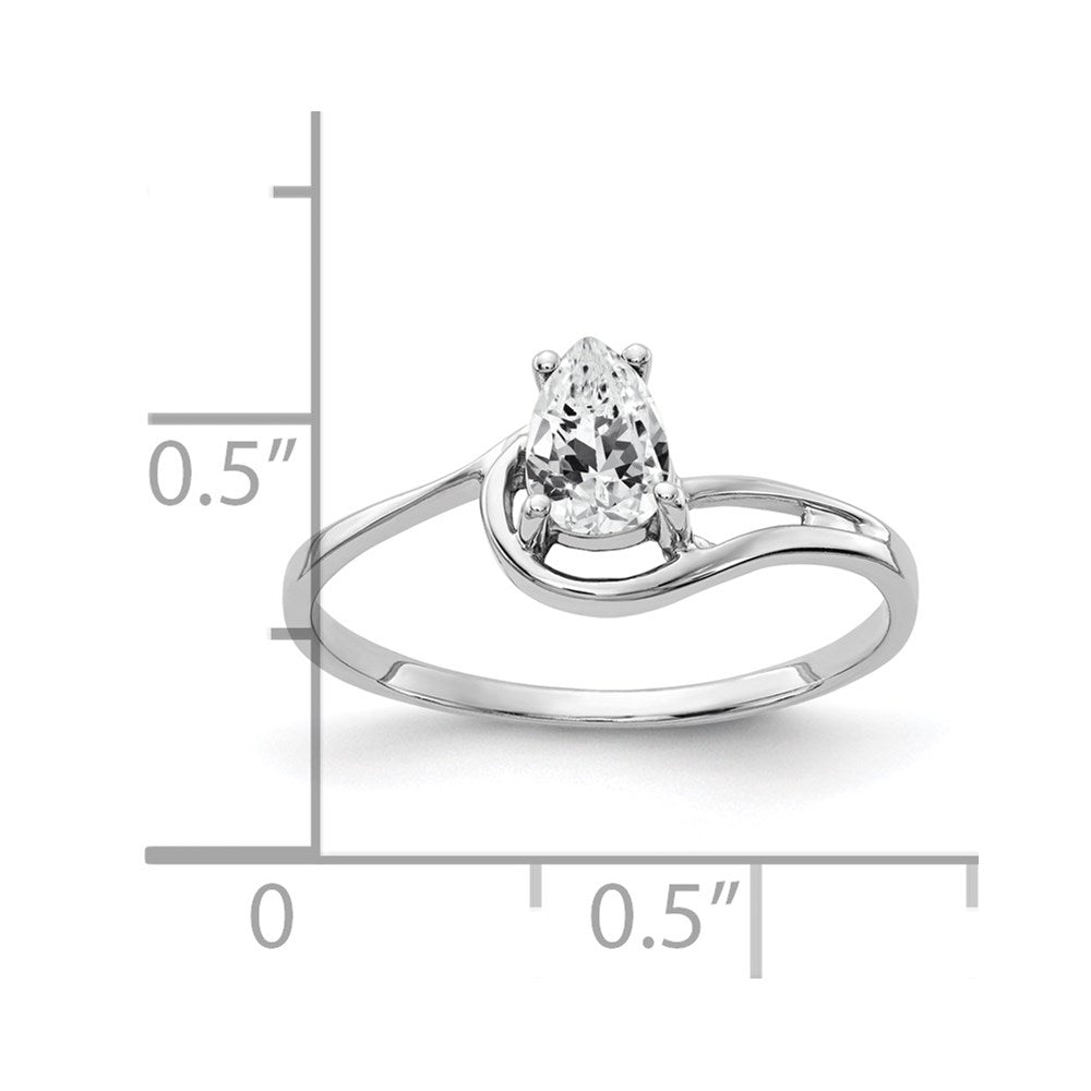 14k Wiriß Gold 6x4mm Birne Kubistch Zirkeinia Ring