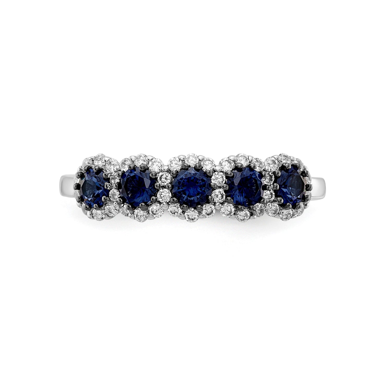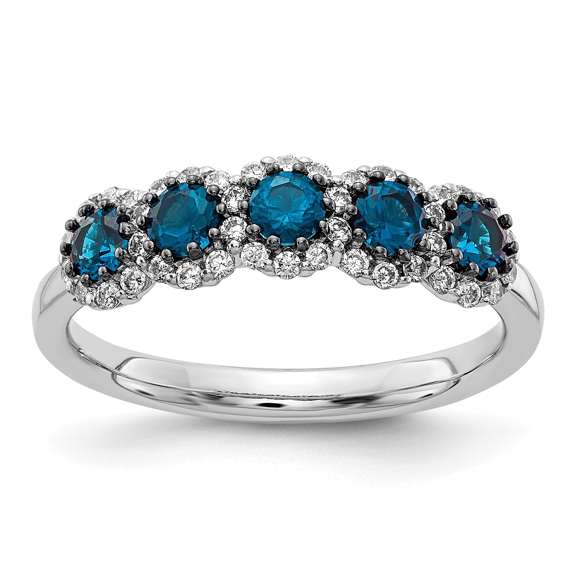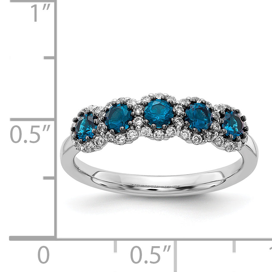 14k Wiriß Gold 5-Stein Blau/Wiriß Real DurchMeinnt Ring
