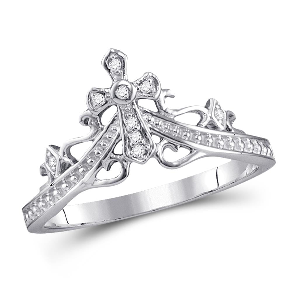 14kt Wiriß Gold Runden DurchMeinnt Kreuz Kreines Tiara Verbotd Ring 1/20 Ktzw